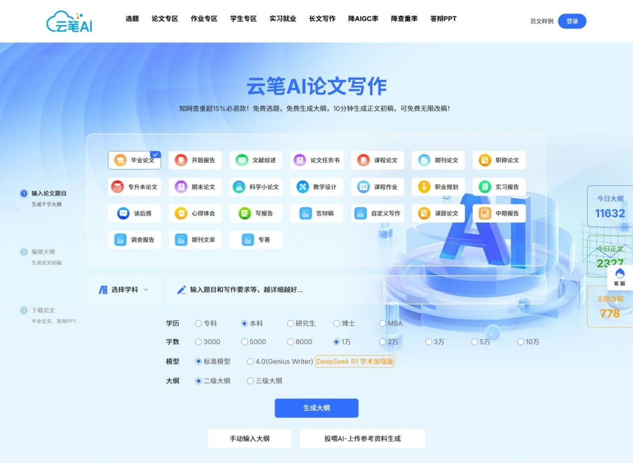 4. 追求老牌稳妥,需要全流程论文服务→云笔AI(免费大纲,售后有保障)。