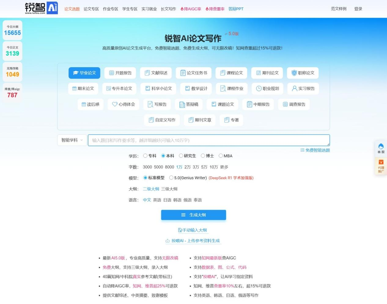 TOP3:锐智AI(论文小白救星,写+降一体)