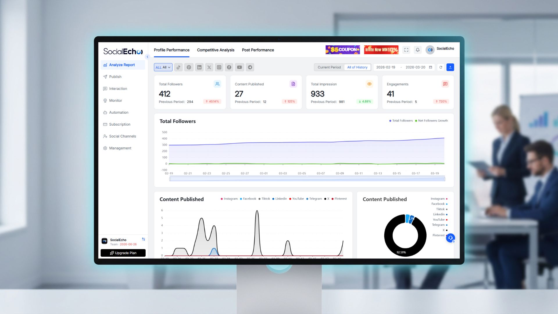2026 年初,公司决定引入多平台社媒管理工具。李敏开始用 SocialEcho 管理所有 9 个平台。