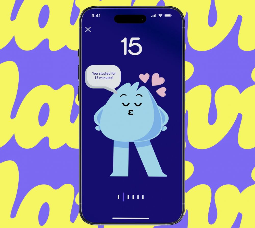 以软萌的水滴形卡通形象为品牌核心 IP,设计了丰富的表情、动作与情绪状态,贯穿启动页、答题页、进度页、个人中心等全流程界面,将冰冷的学习工具转化为有温度的学习伙伴,大幅降低孩子的学习抵触感,强化情感连接。