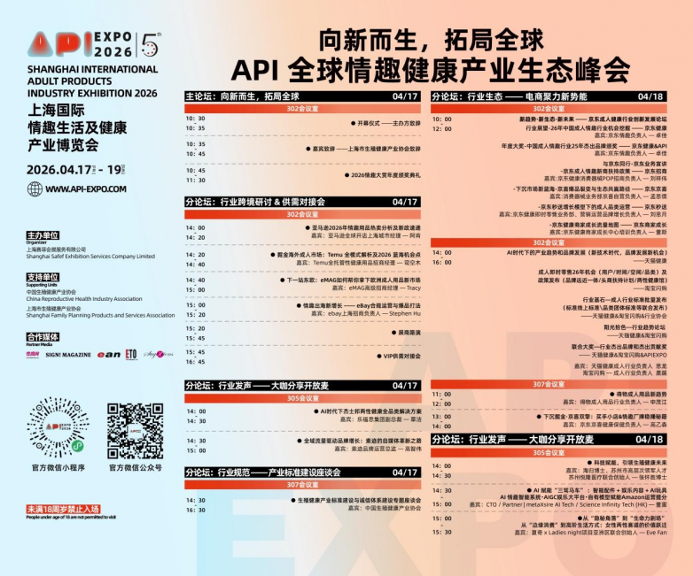 2026上海API情趣生活展向世界宣告:中国情趣大健康产业正经历伟大的“向新而生”。智能化重塑产品体验,全球化重构商业版图,API将始终做最坚定的同行者与赋能者,与全行业携手并肩,向着全球万亿大市场,全速进发!