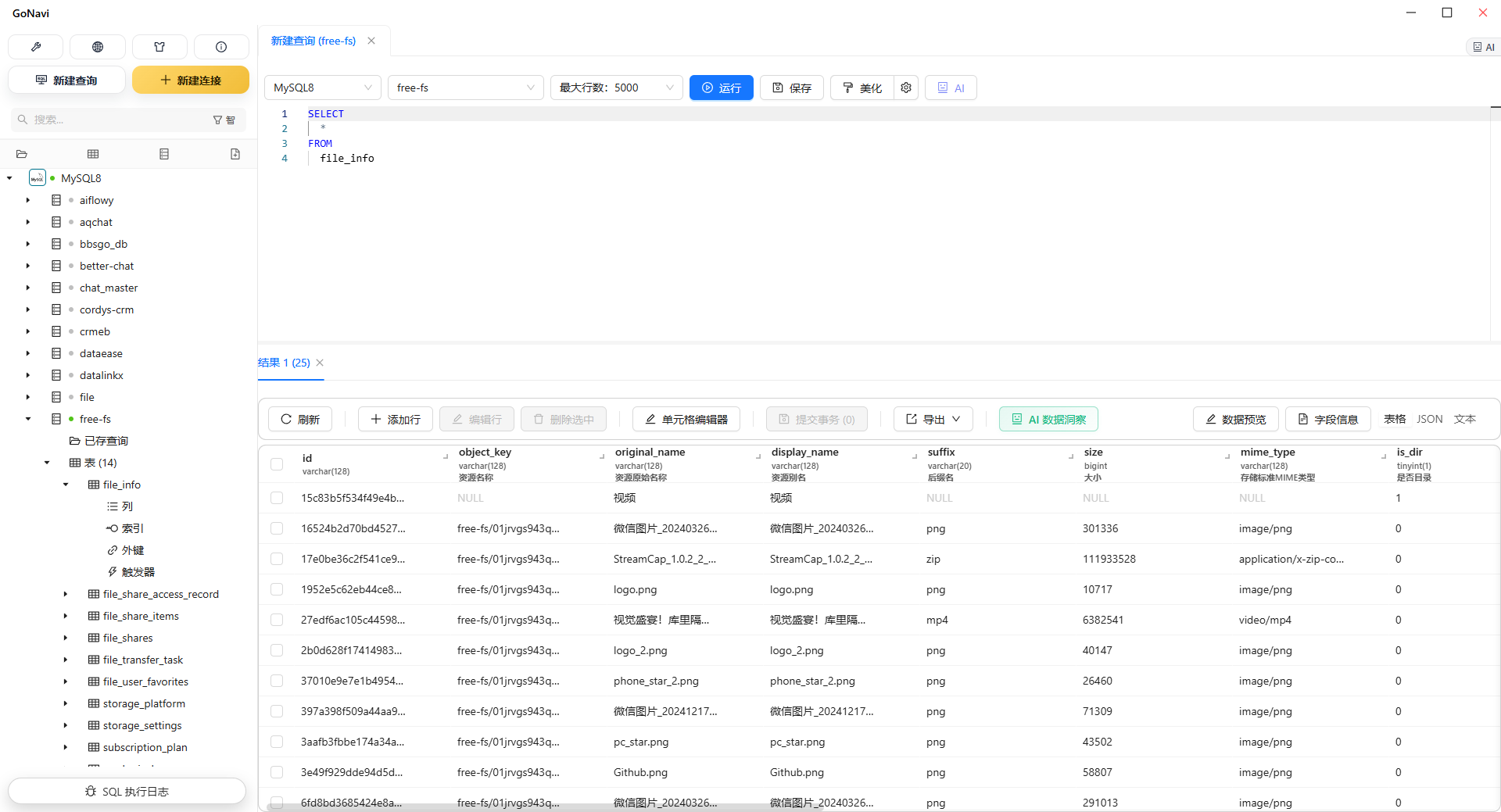 - 极致轻量:基于 Go + Wails 开发,告别 Electron 臃肿卡顿,启动快、内存占用低,大数据表操作流畅不卡顿