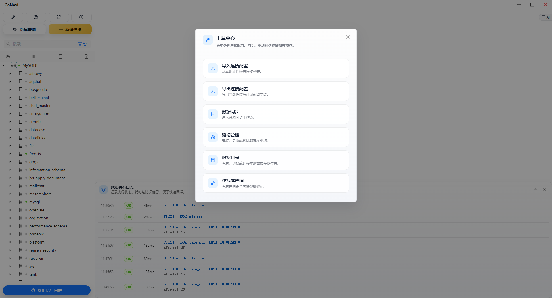 GoNavi 做为一款跨平台数据库客户端工具,相比于其他传统工具,更轻量,启动更快。而且功能强大,完美覆盖开发者、DBA 的日常需求。快去下载试试吧~