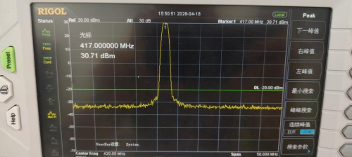 UHF 频段(417.00MHz):输出功率达 30.71 dBm(约 1.18W),峰值功率稳定。