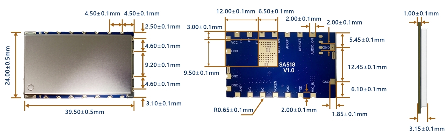 在专业无线对讲模块设计中,U/V 双频、收发频率独立、小型化集成是工程上较难同时兼顾的四项关键指标。SA518 对讲模块支持VHF 136–174MHz 与 UHF 400–470MHz双频段工作,两段频率跨度接近 3 倍,在宽带阻抗匹配、收发隔离、双频段功率一致性、滤波结构及 ESD 防护设计上,对 PCB 布局、面积与结构空间均有明确约束。