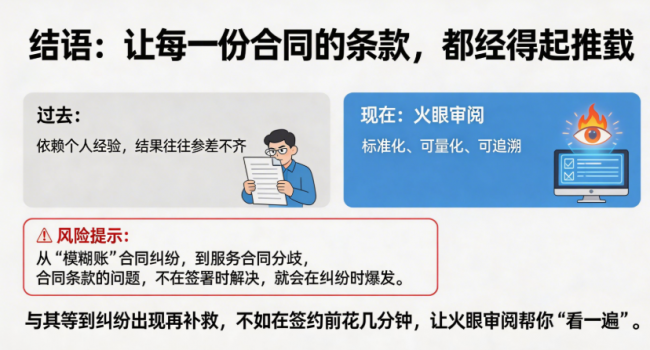 与其等到纠纷出现再补救,不如在签约前花几分钟,让火眼审阅帮你“看一遍”。