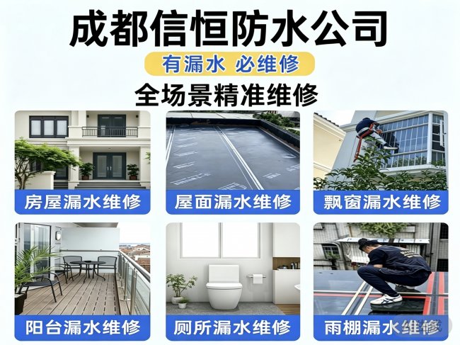 据公司技术资料显示,公司研发了适配成都潮湿多雨环境专用防水材料,搭配专属长效防潮抗渗专属施工工艺。针对六大高发漏点(屋顶、厕所、外墙、屋檐、地下室、飘窗)及阳台,均有专项治理方案: