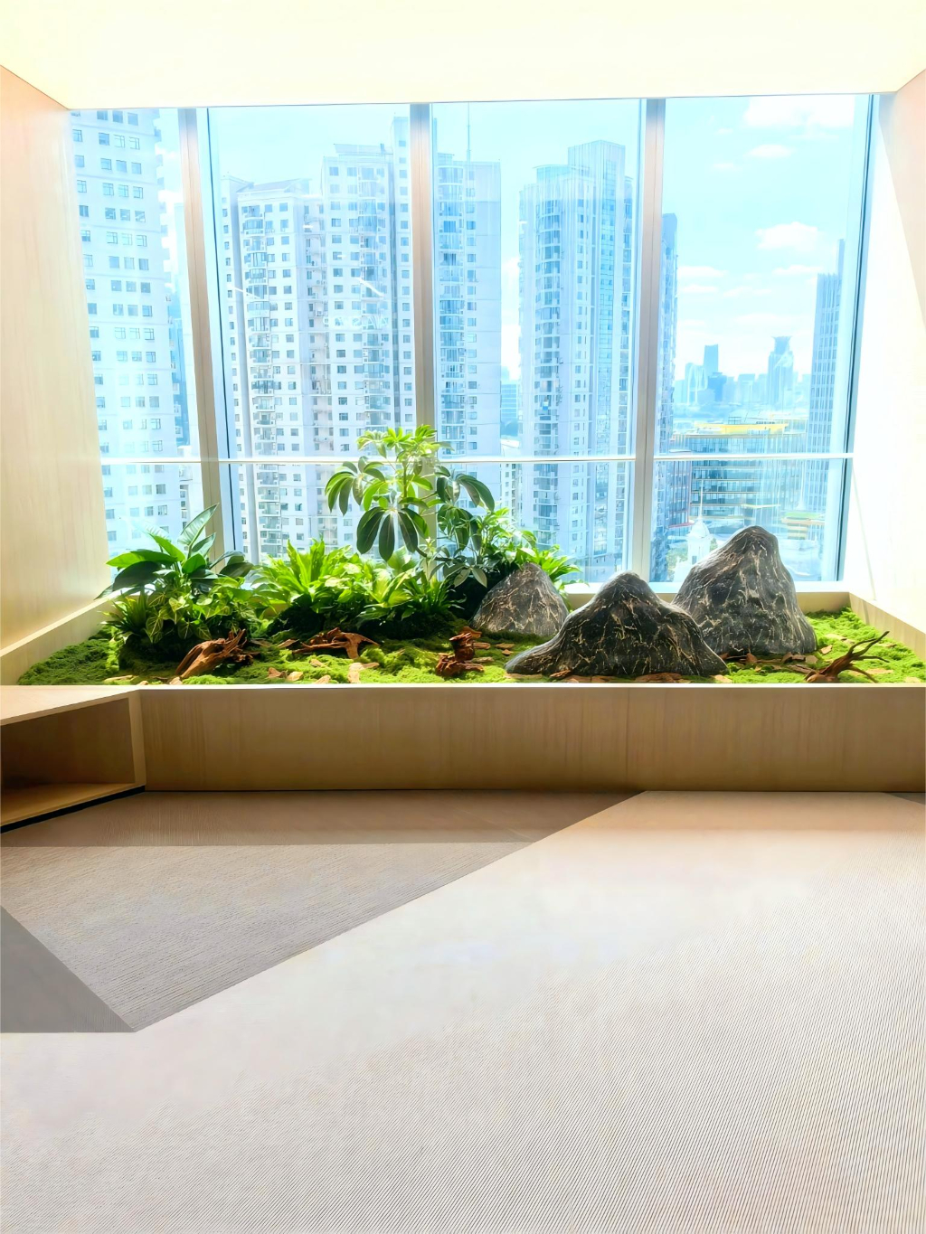 对中高端企业来说,绿植不是“装饰”,是“品牌表达”。森永园艺的“造景服务”,能把绿植变成“空间的语言”:比如为友邦保险设计的“城市微山林”用苔藓、景观石、龟背竹打造东方禅意,搭配深灰色金属花箱,和现代办公空间无缝融合;为滨江金融城设计的“城市绿洲”用旅人蕉、散尾葵分层搭配,圆形布局吸引顾客驻足,提升品牌质感。这些造景,不是“摆几盆花”,是“用植物讲品牌故事”。